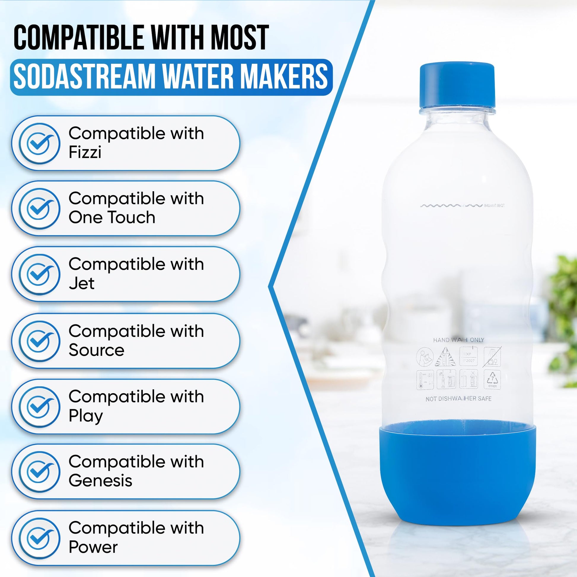 - Versatile Bottles: This 3-pack of 1 Liter carbonating bottles is compatible with SodaStream sparkling water makers, including Fizzi, One Touch, Jet, Source, Play, Genesis, and Power models.