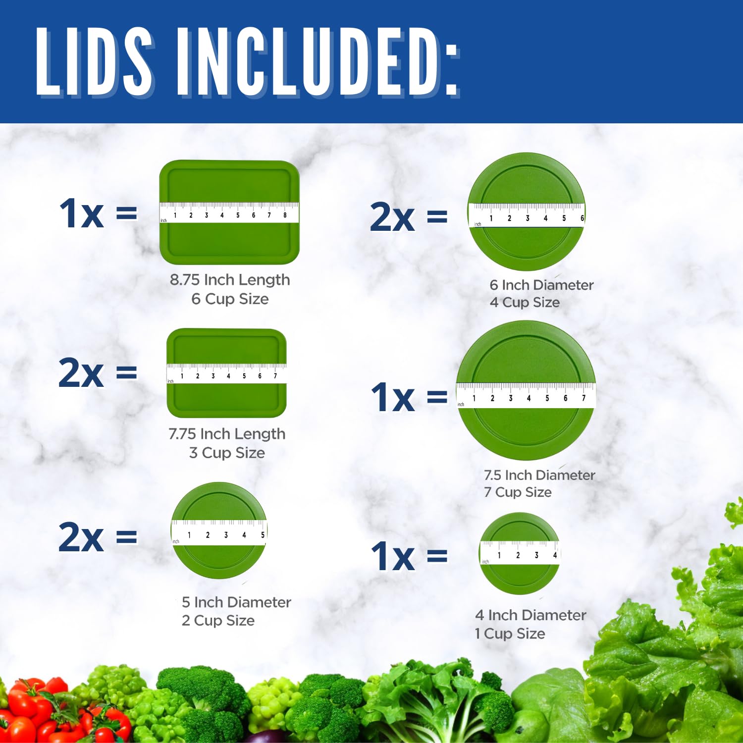 Replacement Lids for Pyrex Containers - 1-Cup, 2-Cup, 3-Cup, 4-Cup, 6-Cup, 7-Cup Blue and Red Round Rectangle