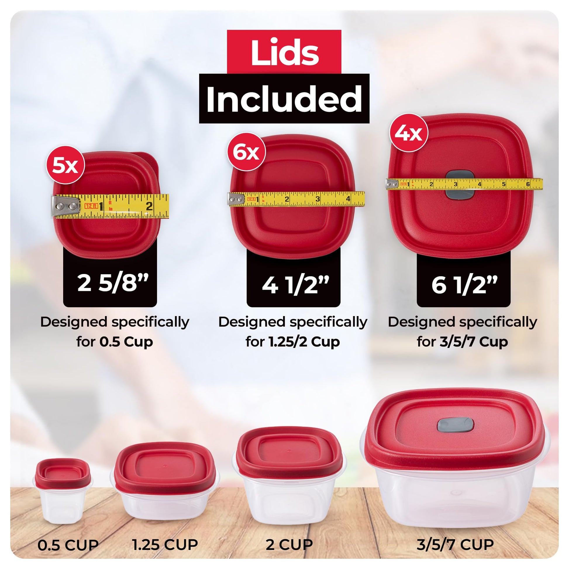Replacement Lids for Rubbermaid Food Storage Containers .5 Cup, 1.25/2 Cup, 3/57 Cup Vented